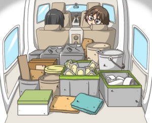 車の後ろには、塗装現場で使う様々な道具がてんこ盛りでした。