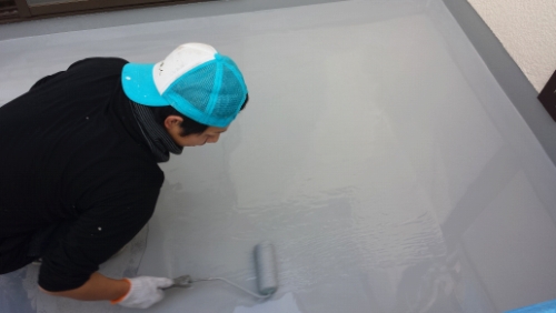 普段は生で見ることのできない防水塗装。